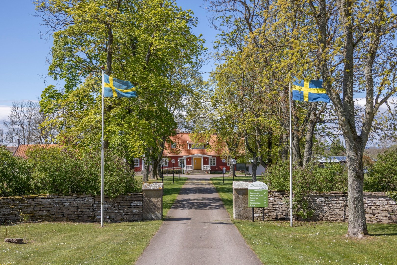 Allégården Kastlösa has 10 tent, camper and caravan pitches with electricity. Camping guests have access to the service building which is located next to the pool. During the period the pool is open, pool entrance is included in the fee for up to 5 guests per pitch. The service building has a kitchenette with fridge and freezer, toilets and showers and a laundry room. We only offer latrine emptying and emptying of grey water in the sink. Municipal water can be filled with a hose at the designat